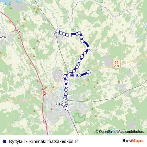 Ryttylä I - Riihimäki matkakeskus P bus Route Map