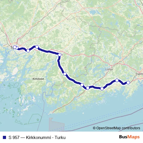 Click here to view the nearest S 957 - Kirkkonummi - Turku rail stop.