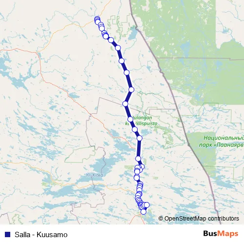 Additional information: Salla - Kuusamo has 52 stops and the total trip duration for this route is approximately 155 minutes.