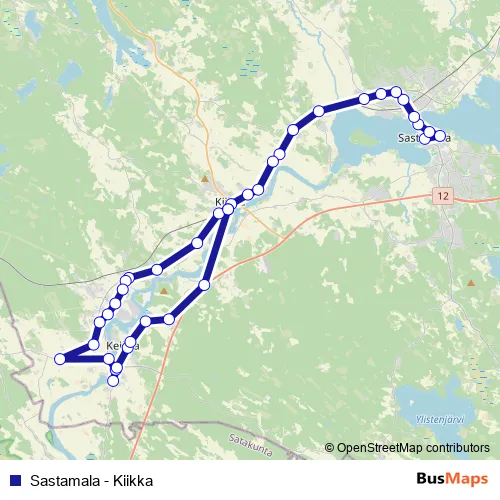 Additional information: Sastamala - Kiikka has 38 stops and the total trip duration for this route is approximately 60 minutes.