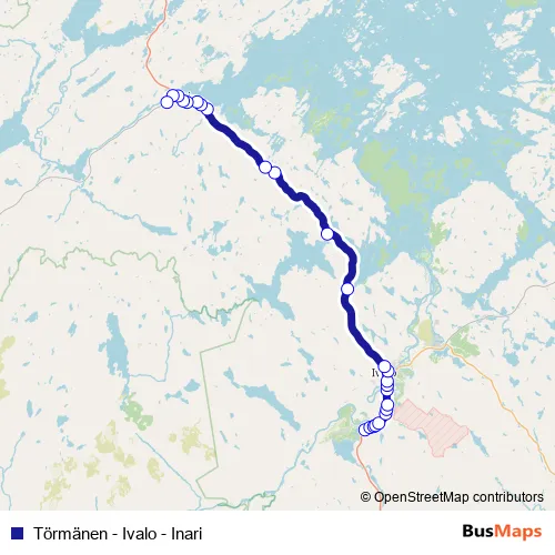 Additional information: Törmänen - Ivalo - Inari has 25 stops and the total trip duration for this route is approximately 55 minutes.
