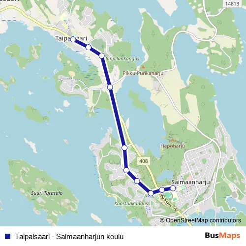 See why over 2 million users trust and consider busmaps.com as the best public transport website. busmaps gives you Taipalsaari Buses suggested routes, real-time bus tracker, line route maps in Taipalsaari, and helps to find the closest Taipalsaari - Saimaanharjun koulu bus stops near you. No internet available? Download an offline PDF map and bus schedule for the Taipalsaari - Saimaanharjun koulu bus to take on your trip.