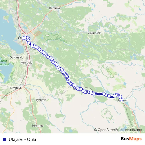 The first stop of the Utajärvi - Oulu bus route is Utajärvi and the last stop is