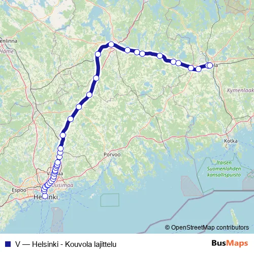 See why over 2 million users trust and consider busmaps.com as the best public transport website. busmaps gives you Helsinki Rail Services suggested routes, real-time bus tracker, line route maps in Helsinki, and helps to find the closest V rail stops near you. No internet available? Download an offline PDF map and bus schedule for the V rail to take on your trip.