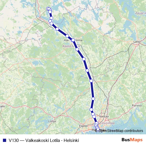 Bus V130 - Valkeakoski Lotila - Helsinki Schedule in Helsinki