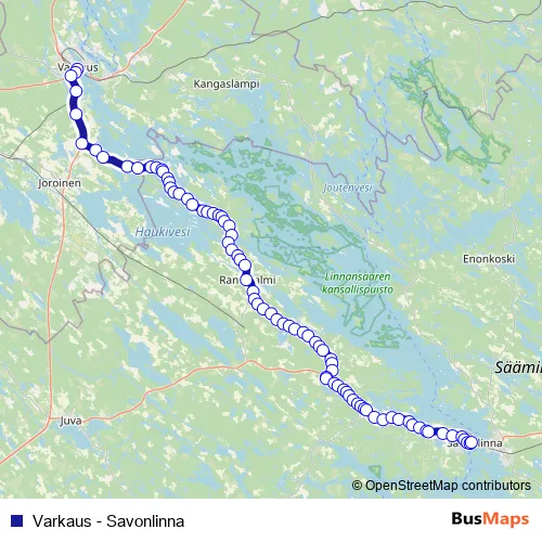 Additional information: Varkaus - Savonlinna has 80 stops and the total trip duration for this route is approximately 85 minutes.