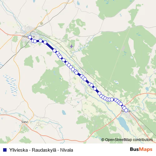 Ylivieska - Raudaskylä - Nivala bus Route Map