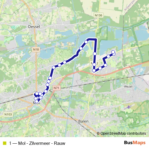 Bus 1 - Mol - Zilvermeer - Rauw: Full Schedule in Mol
