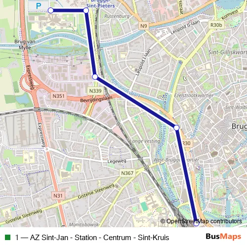 1 (AZ Sint-Jan - Station - Centrum - Sint-Kruis) Bus in Brugge