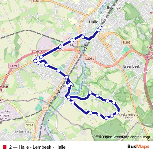 The first stop of the 2 bus route is Halle Station perron 4 and the last stop is Halle Station perron 4. 2 (Halle - Lembeek - Halle) is operational during tous les jours.