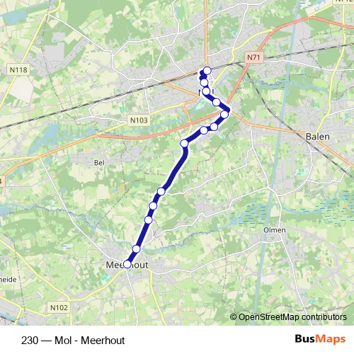 See why over 2 million users trust and consider busmaps.com as the best public transport website. busmaps gives you Mol Buses suggested routes, real-time bus tracker, line route maps in Mol, and helps to find the closest 230 bus stops near you. No internet available? Download an offline PDF map and bus schedule for the 230 bus to take on your trip.