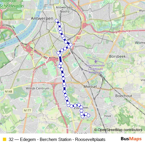 Bus 32 - Edegem - Berchem Station - Rooseveltplaats: Full Schedule in Edegem