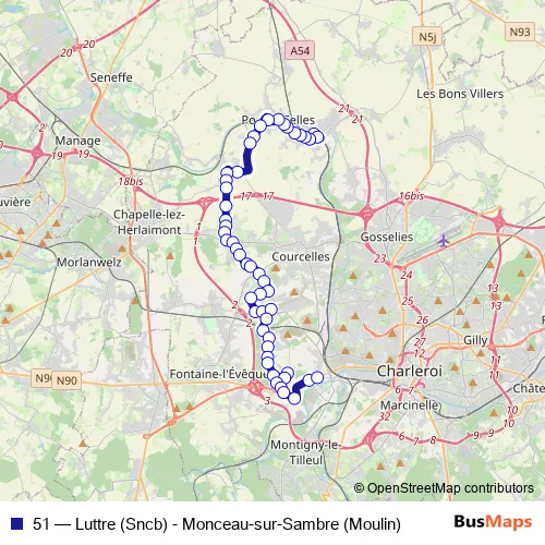 Bus 51 - Luttre (Sncb) - Monceau-sur-Sambre (Moulin): Full Schedule in Goutroux