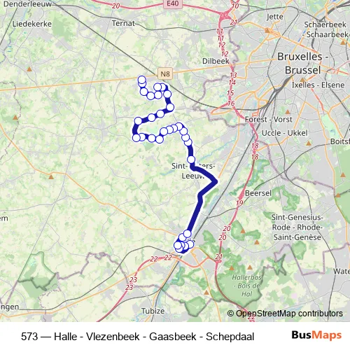 Bus 573 - Halle - Vlezenbeek - Gaasbeek - Schepdaal Schedule in Brussels