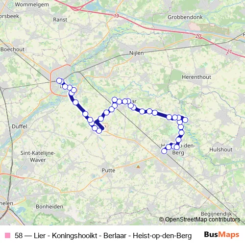 Bus 58 - Lier - Koningshooikt - Berlaar - Heist-op-den-Berg in Lier: Stops & Timetable