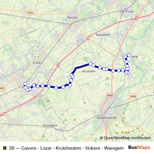 Bus 59 - Gavere - Lozer - Kruishoutem - Nokere - Waregem: Full Schedule in Waregem