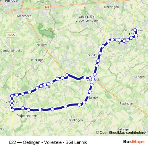 Click here to view the nearest 622 - Oetingen - Vollezele - SGI Lennik bus stop.