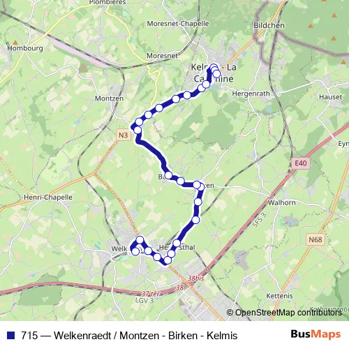 Click here to view the nearest 715 - Welkenraedt / Montzen - Birken - Kelmis bus stop.