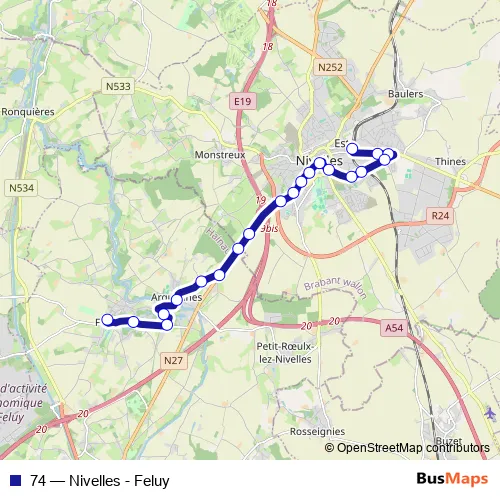 Click here to view the nearest 74 - Nivelles - Feluy bus stop.