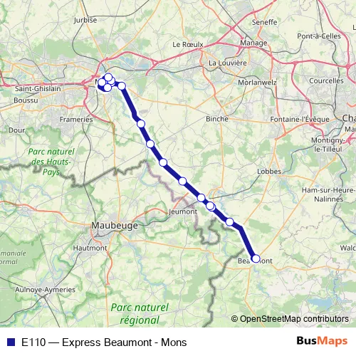 Click here to view the nearest E110 - Express Beaumont - Mons bus stop.
