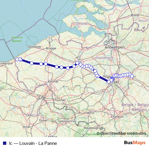 The first stop of the Ic rail route is Louvain and the last stop is La Panne. Ic (Louvain - La Panne) is operational during le week-end.