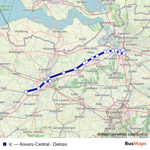 The first stop of the Ic rail route is Anvers-Central and the last stop is Deinze. Ic (Anvers-Central - Deinze) is operational during le week-end.