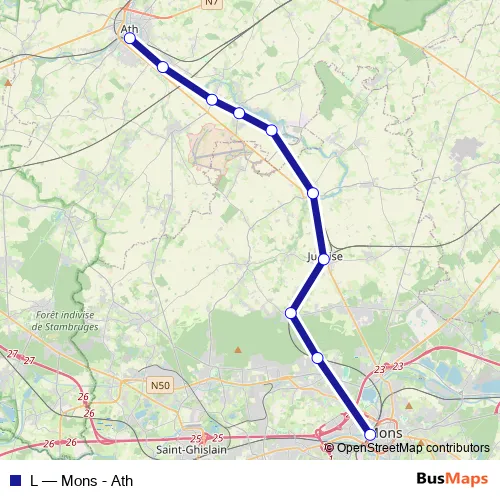 Mons. L (Mons - Ath) is operational during tous les jours.