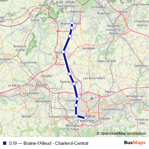 Braine-l'Alleud. S19 (Braine-l'Alleud - Charleroi-Central) is operational during tous les jours.