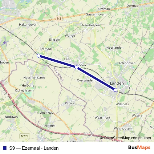 Ezemaal. S9 (Ezemaal - Landen) is operational during tous les jours.