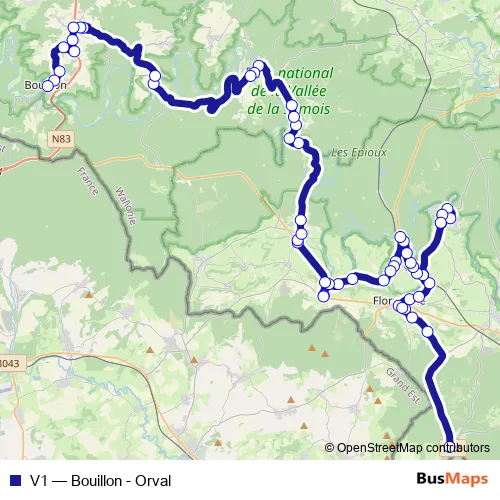 Click here to view the nearest V1 - Bouillon - Orval bus stop.