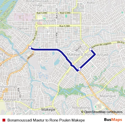 Bonamoussadi Maetur to Rone Poulen Makepe bus Route Map