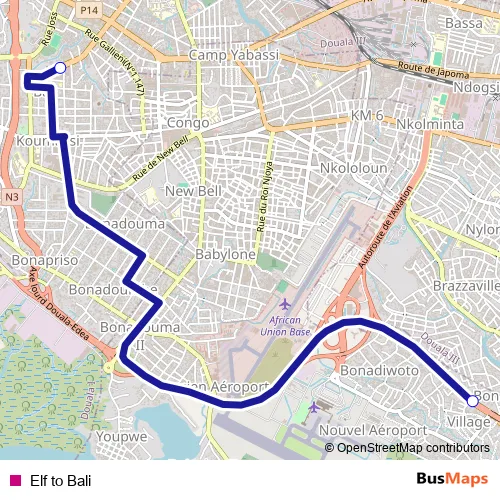 Bus Elf to Bali in Douala: Stops & Timetable