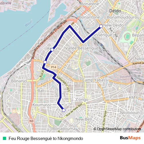 Feu Rouge Bessenguè to Nkongmondo bus Route Map
