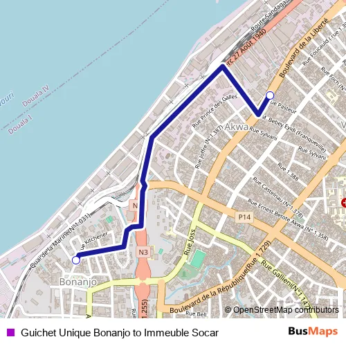 Guichet Unique Bonanjo to Immeuble Socar bus Route Map