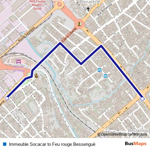 Immeuble Socacar to Feu rouge Bessenguè bus Route Map