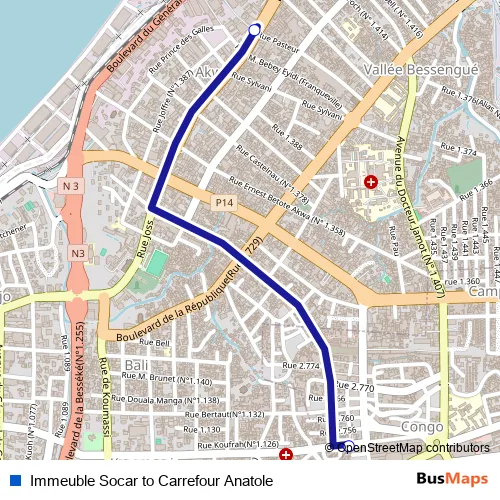 Bus Immeuble Socar to Carrefour Anatole in Douala: Stops & Timetable