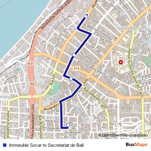 Bus Immeuble Socar to Secretariat de Bali in Douala: Stops & Timetable