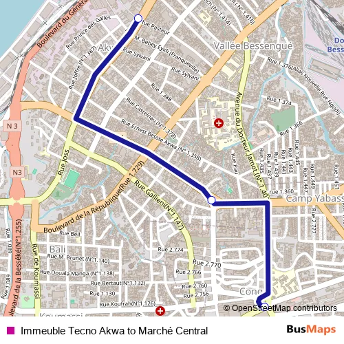 Immeuble Tecno Akwa to Marché Central bus Route Map