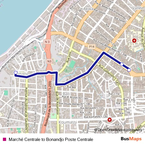 Marché Centrale to Bonandjo Poste Centrale bus Route Map