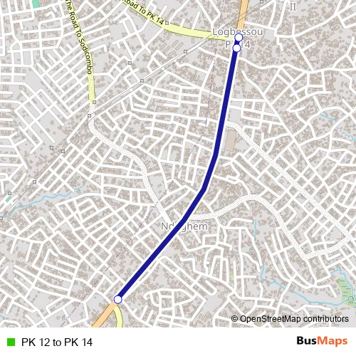 See why over 2 million users trust and consider busmaps.com as the best public transport website. busmaps gives you Douala Buses suggested routes, real-time bus tracker, line route maps in Douala, and helps to find the closest PK 12 to PK 14 bus stops near you. No internet available? Download an offline PDF map and bus schedule for the PK 12 to PK 14 bus to take on your trip.