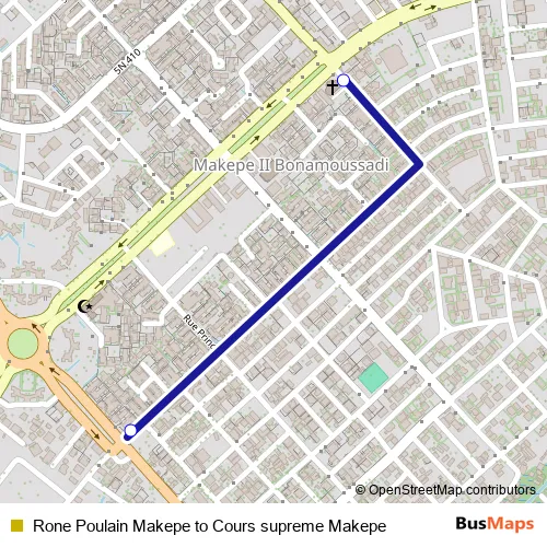 Rone Poulain Makepe to Cours supreme Makepe bus Route Map