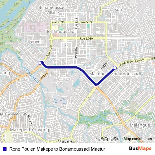Rone Poulen Makepe to Bonamoussadi Maetur bus Route Map