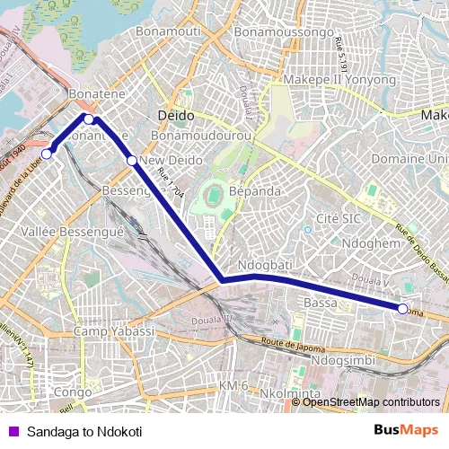 See why over 2 million users trust and consider busmaps.com as the best public transport website. busmaps gives you Douala Buses suggested routes, real-time bus tracker, line route maps in Douala, and helps to find the closest Sandaga to Ndokoti bus stops near you. No internet available? Download an offline PDF map and bus schedule for the Sandaga to Ndokoti bus to take on your trip.