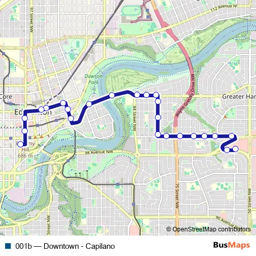 The first stop of the 001b bus route is Capilano Transit Centre and the last stop is 102 Street & Macdonald Drive. 001b (Downtown - Capilano) is operational during tous les jours.