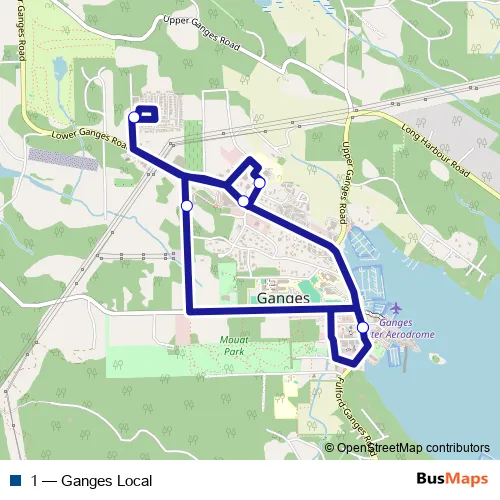 The first stop of the 1 bus route is Visitor Info Centre and the last stop is Visitor Info Centre. 1 (Ganges Local) is operational during tous les jours.