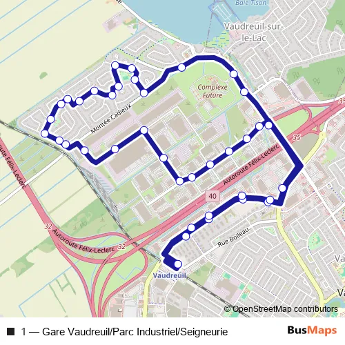 The first stop of the 1 bus route is Terminus Vaudreuil - Quai 10 and the last stop is Terminus Vaudreuil - Quai 10. 1 (Gare Vaudreuil/Parc Industriel/Seigneurie) is operational during en semaine.