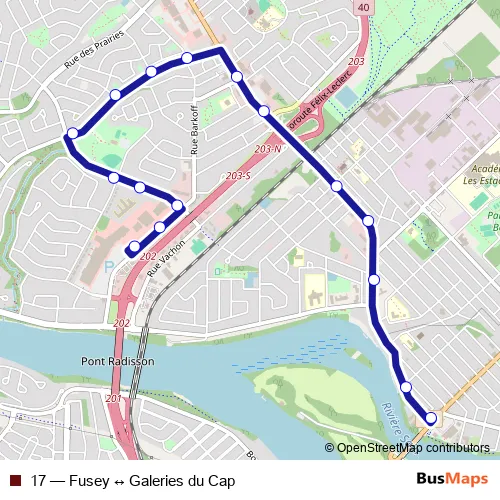Bus 17 - Fusey ↔ Galeries du Cap Schedule in Trois-Rivieres
