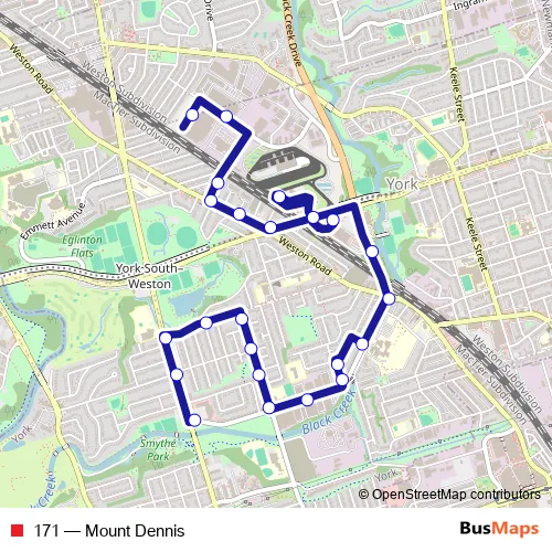 Click here to view the nearest 171 - Mount Dennis bus stop.