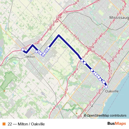Click here to view the nearest 22 - Milton / Oakville bus stop.