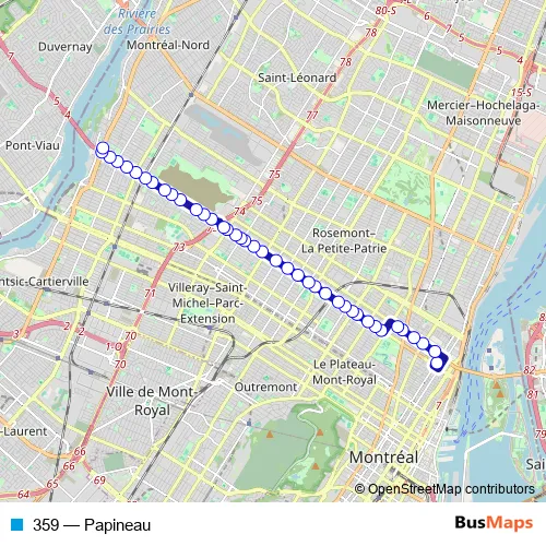 See why over 2 million users trust and consider busmaps.com as the best public transport website. busmaps gives you Montreal Buses suggested routes, real-time bus tracker, line route maps in Montreal, and helps to find the closest 359 bus stops near you. No internet available? Download an offline PDF map and bus schedule for the 359 bus to take on your trip.